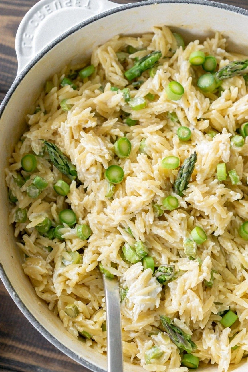 Uncooked orzo is chosen for its ability to absorb liquid while maintaining a firm bite. The orzo’s small, rice‑like shape creates a subtle chew that complements the crunch of asparagus. If you replace orzo with a larger pasta shape, you’ll lose that delicate texture that makes the dish memorable.