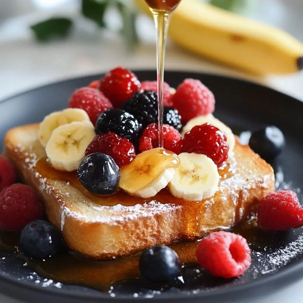- Step 7: Add Fresh Fruit— Top each slice with fresh fruit, such as sliced bananas or a handful of berries. The fruit’s juiciness will cut through the richness of the honey and butter, creating a balanced bite. Arrange the fruit in a pleasing pattern to make the dish visually appealing. The fruit’s color will contrast beautifully with the golden toast. This step adds a burst of freshness that’s perfect for a light breakfast.