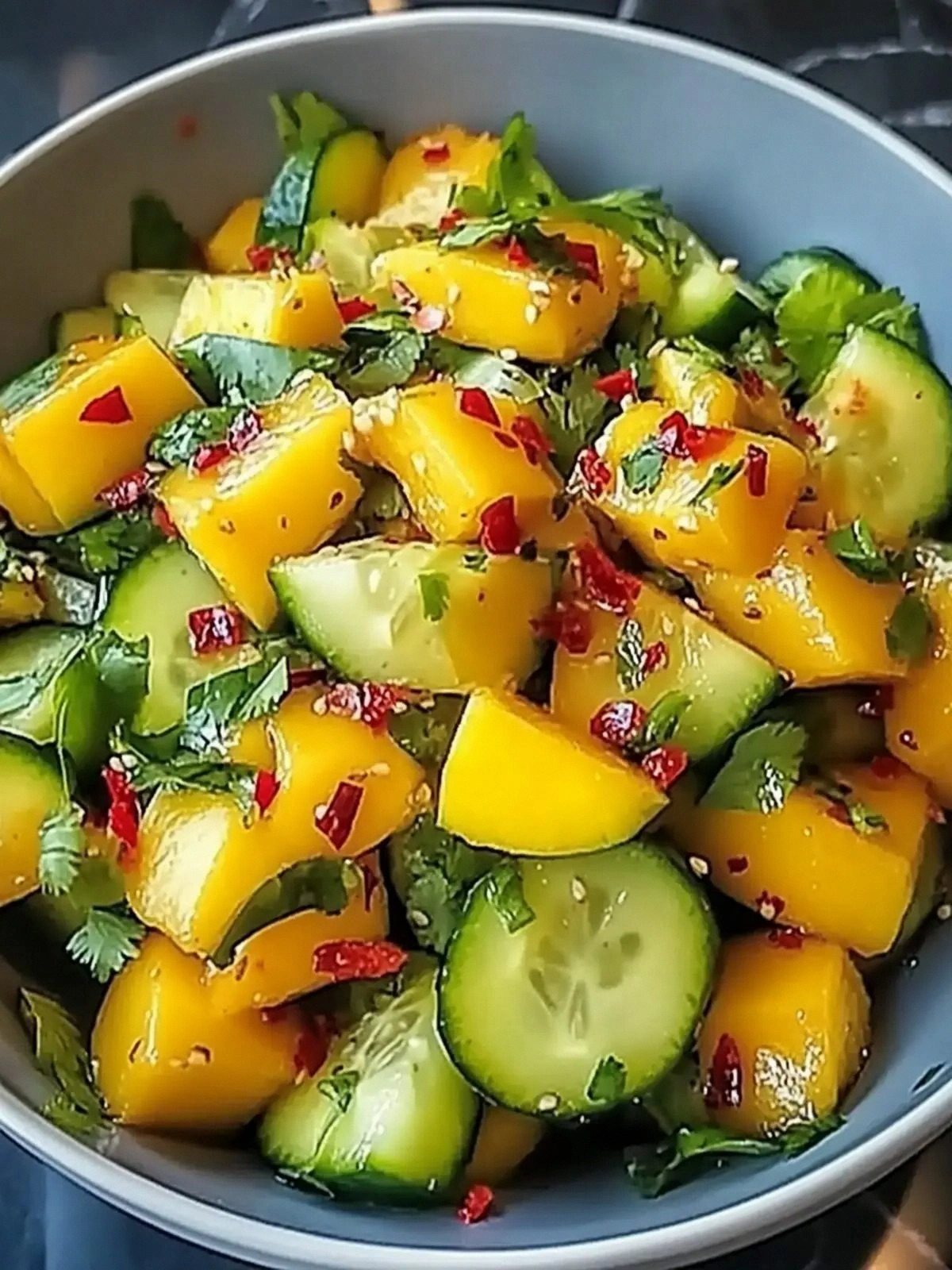 Picture the first bite: bright green cucumber gives way to the golden sweetness of ripe mango, while bell pepper offers a subtle crunch that snaps like a fresh spring snap. The scent of lime and fish sauce rises, mingling with the earthy aroma of cilantro that feels like a breath of fresh forest air. The heat from chili flakes dances across your tongue, leaving a gentle, lingering warmth that’s not overpowering. The texture is a delightful contrast of juicy, crisp, and silky, almost like a tropical orchestra in a single bite. Every mouthful feels like a burst of sunshine on a humid afternoon.