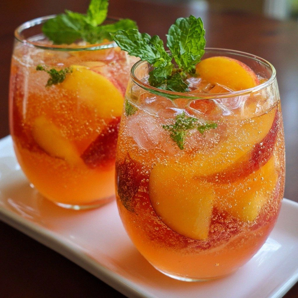 Visual Appeal: The vibrant peach slices and mint leaves create a colorful tableau that looks as good as it tastes. The contrast between the golden fruit and the green mint makes the drink Instagram‑ready, perfect for summer parties.