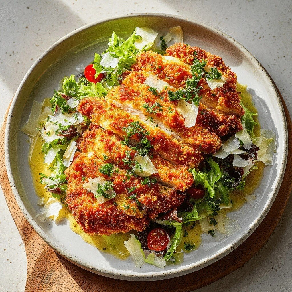 Swap the Caesar dressing for a sun‑dried tomato pesto and add chopped kalamata olives to the breadcrumb mix. The result is a Mediterranean‑inspired schnitzel that pairs beautifully with a side of roasted vegetables.